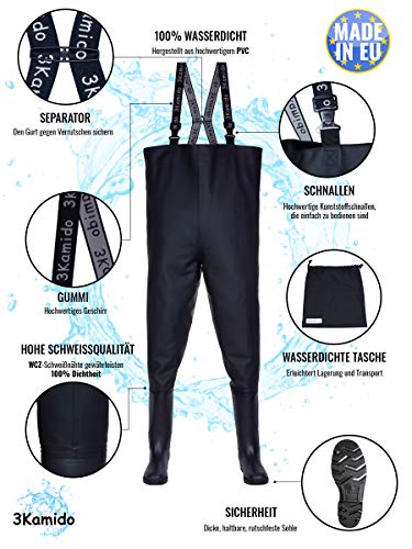 Specification: 3Kamido® Wathose Classic, SCHWARZ und GRÜN Serie 680, Anglerhose Standard, Fischerhose Teichhose Hochwasserhose